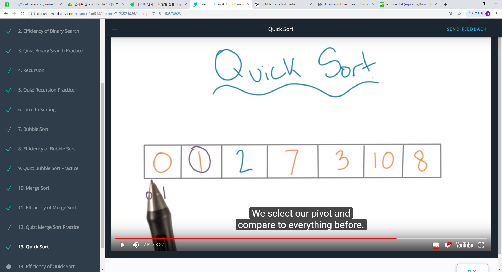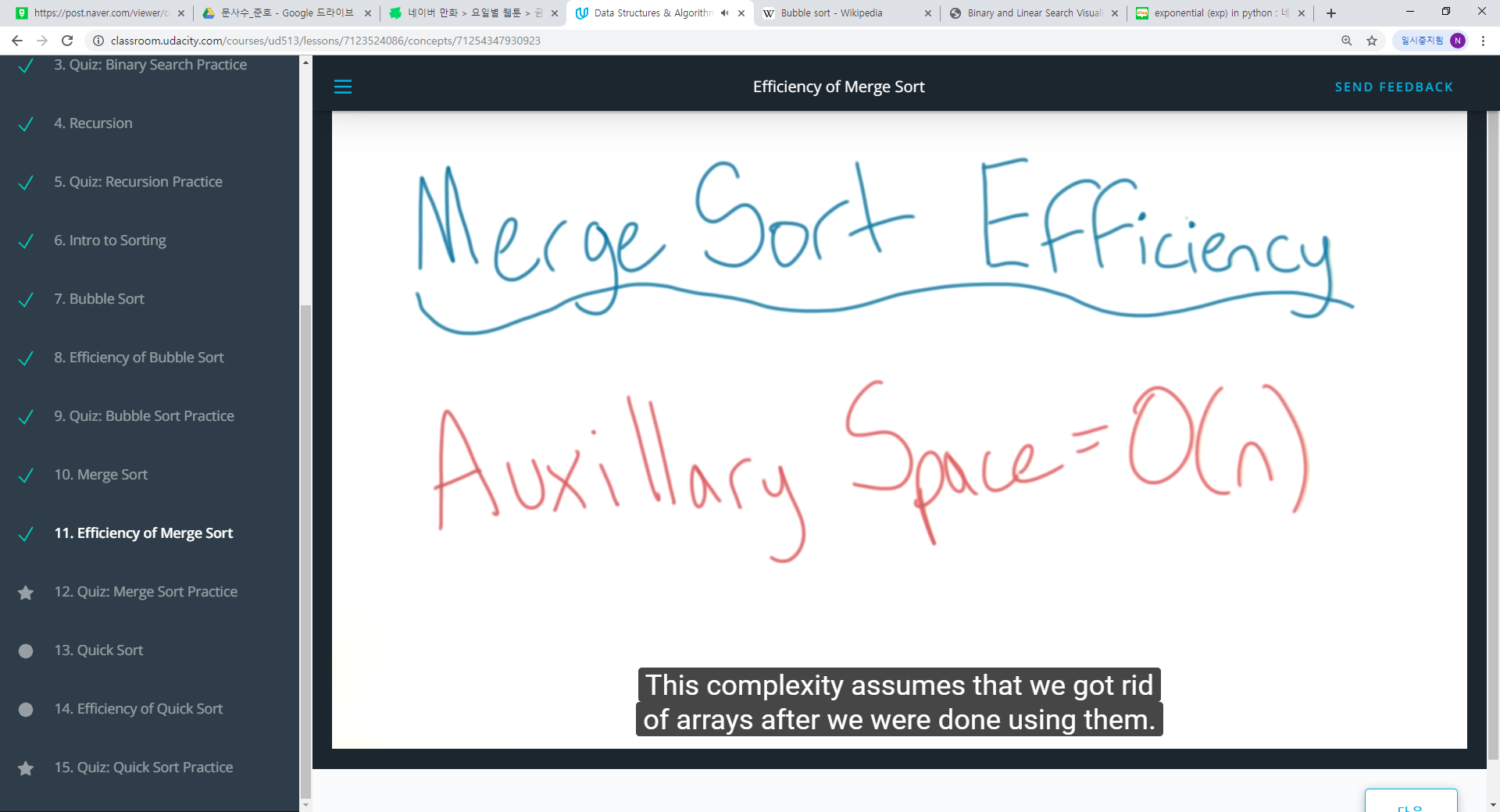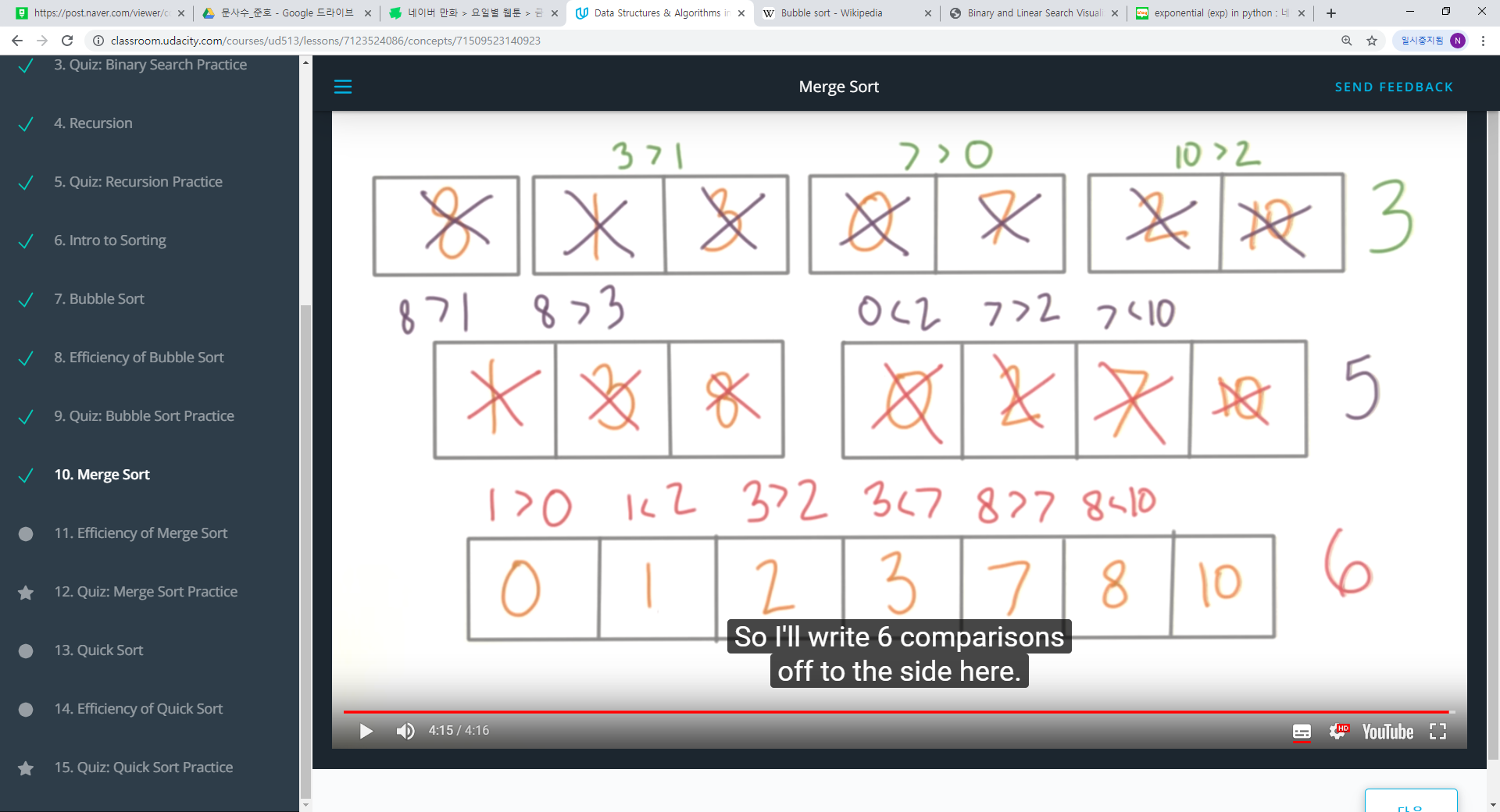 8. 머지 솔트는 다바이드엔 콘쿼라고도 부른다. 일단 대충 나눈 다음에, 순서를 정하고, 나눠진 다른 조각들과 비교하며