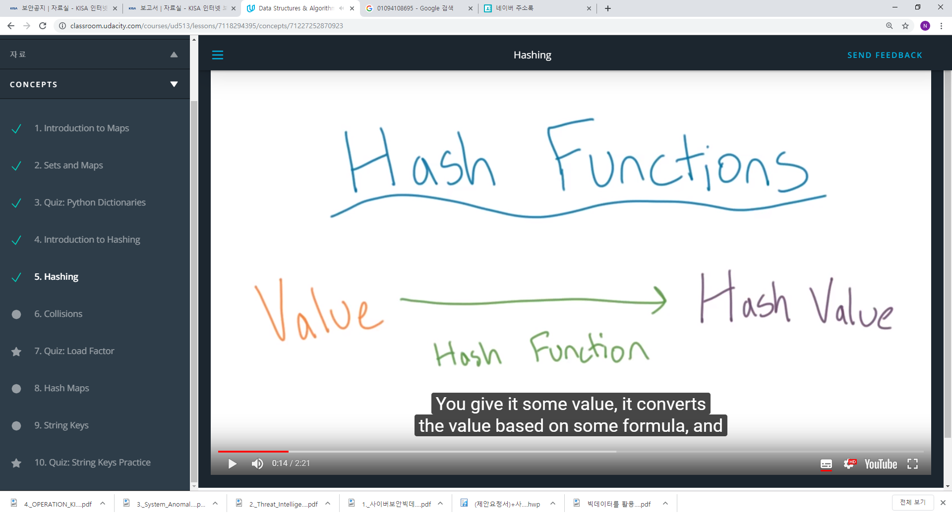 4. 해쉬 퐁션의 목적은 값을 쉽게 저장 되며 불러올 수 있는 값으로 변환하는 것이다.