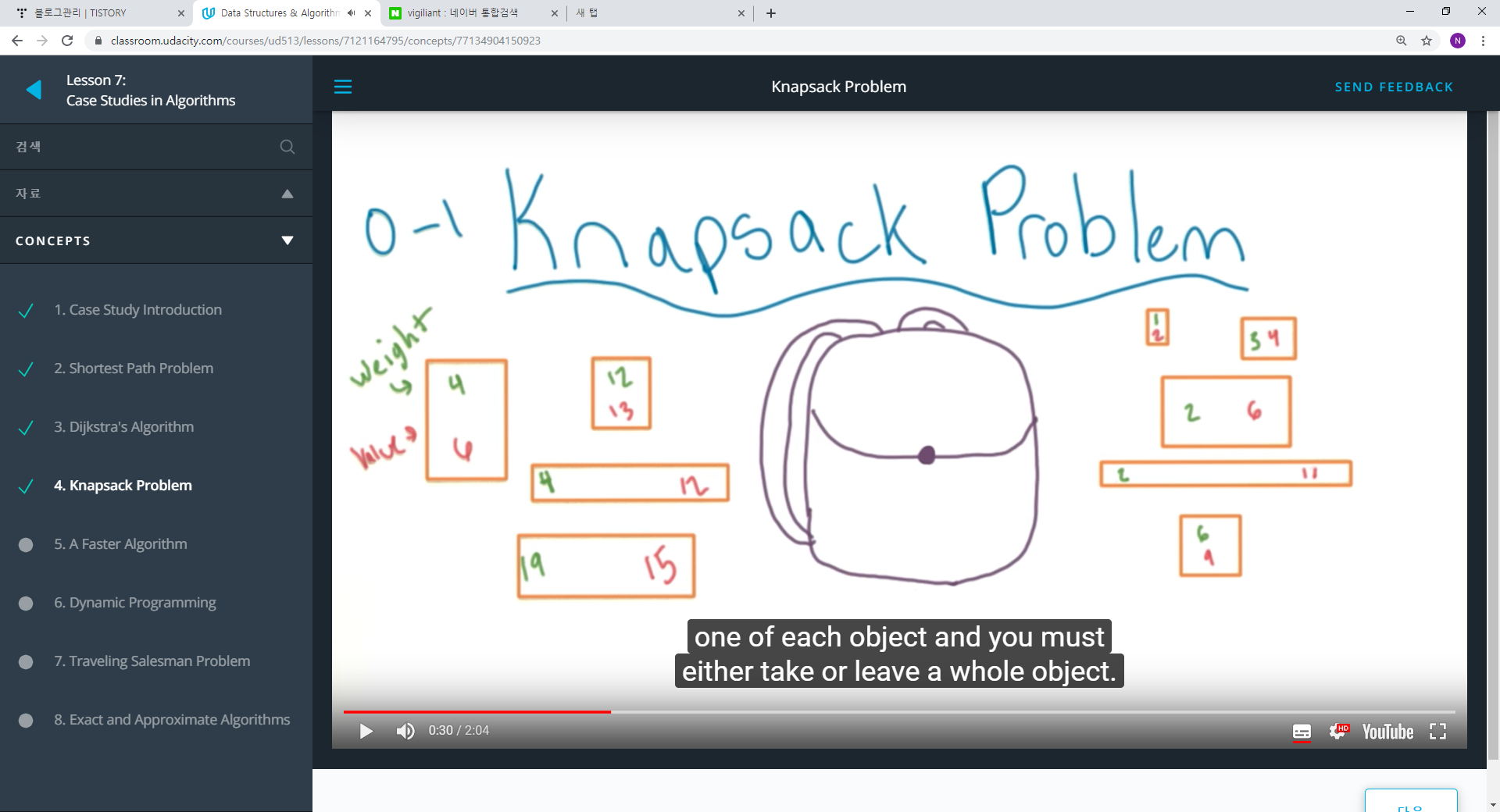 1. 가방에 넣어야 할 물건에 무게가 있고, 값이 있다고 하자. 이 때 문제는 무게 제한 안에서 어떻게 물건의 값의 총합을 최적화 하는 것이냐다.