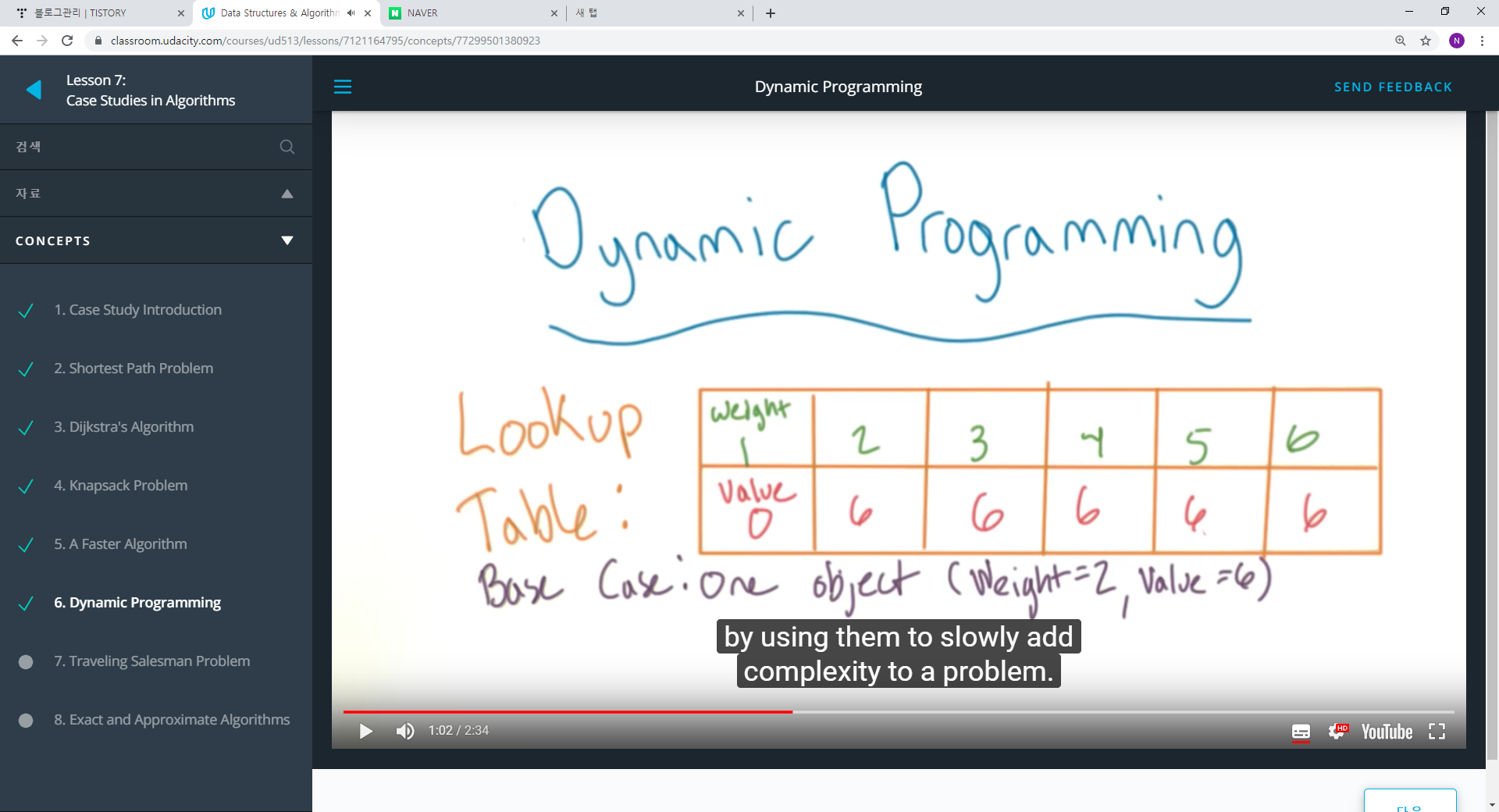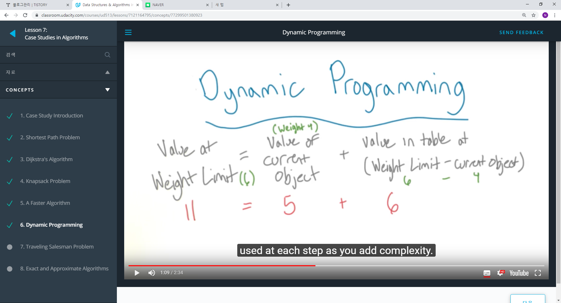 1. 다이나믹 프로그래밍의 또 다른 특징은 복잡성을 더해갈 떄마다 등호가 사용된다는 것이다.