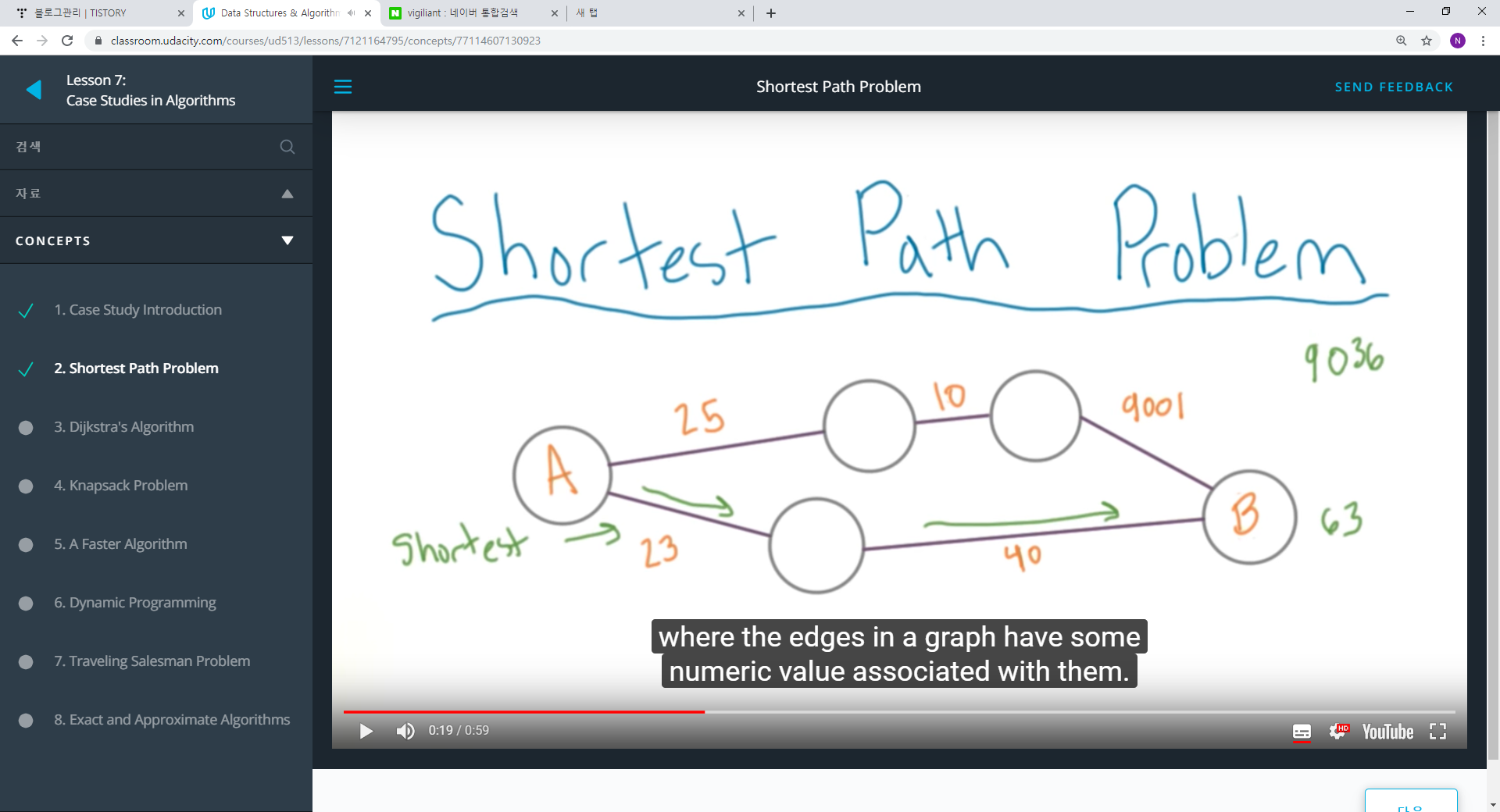1. Weighted undirected graph일 때, Shortest path를 차즌 문제를 Dijkstra's Algorithm이라고 부른다.