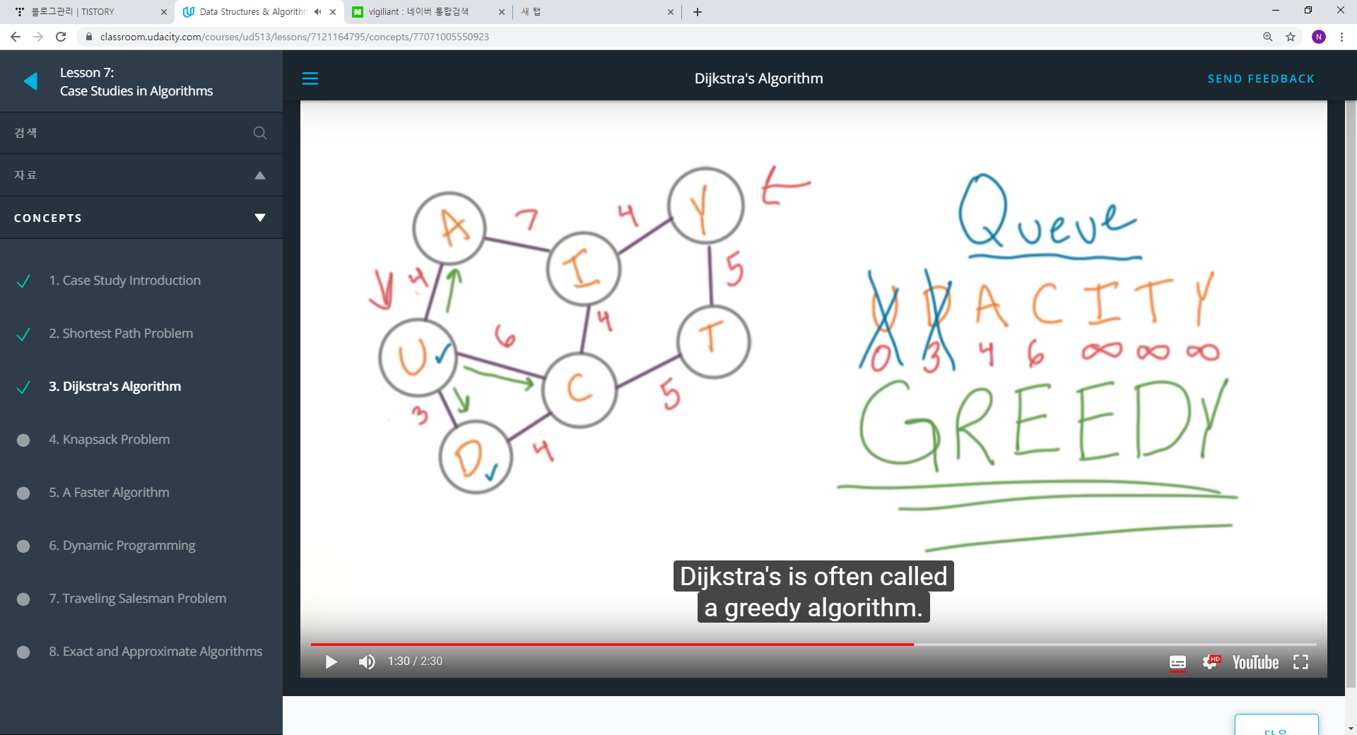 7. 노드 선택의 순간마다, 항상 작은 값을 선택하기 때문에 이러한 성격의 알고리즘을 Gredy하다고 한다.