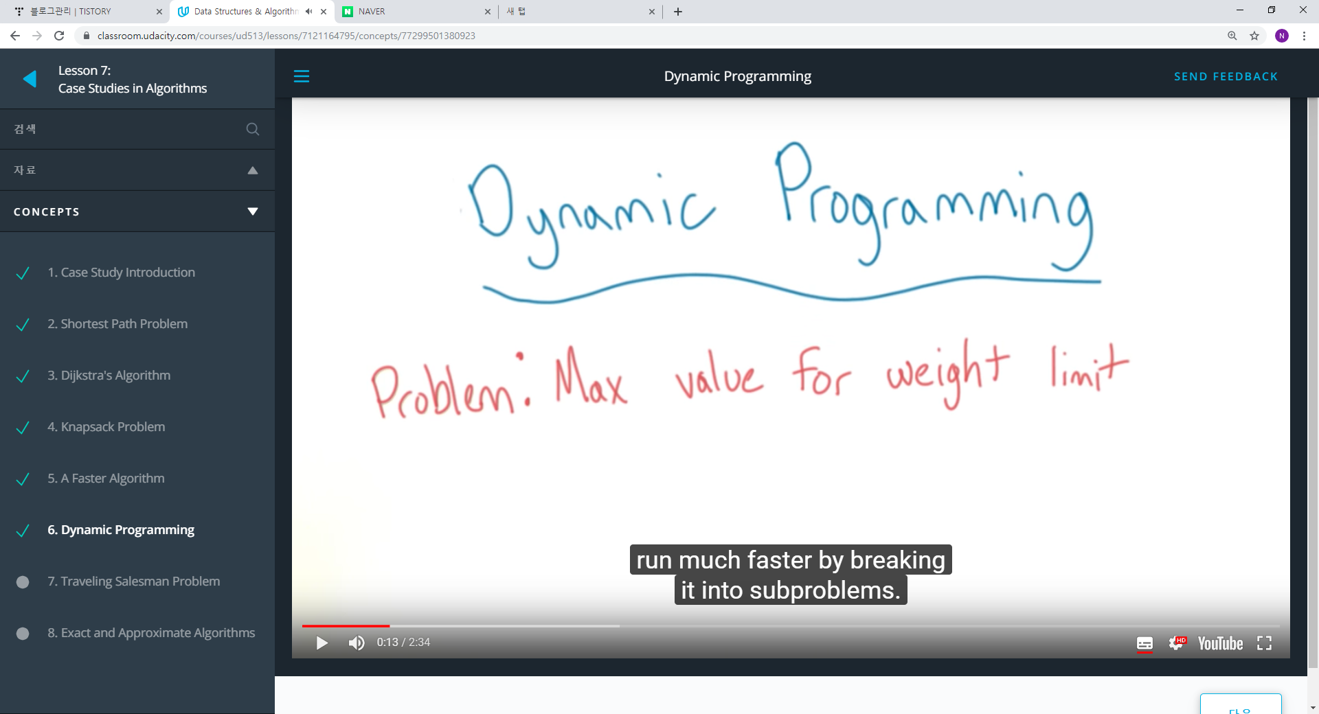1. 세부 문제로 부셔서 문제를 푸는 것이 훨씬 빠르다. 이것이 다이나믹 프로그래밍이다.