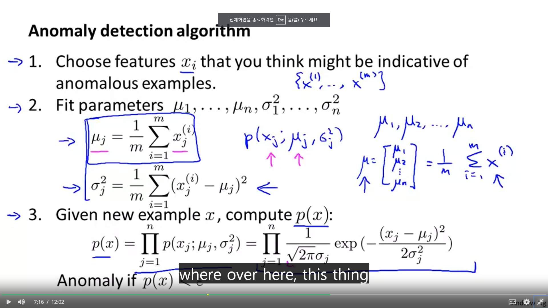 2. 둘째, 각 피쳐들의 분포의 특성인 뮤와 시그마를 구한다.