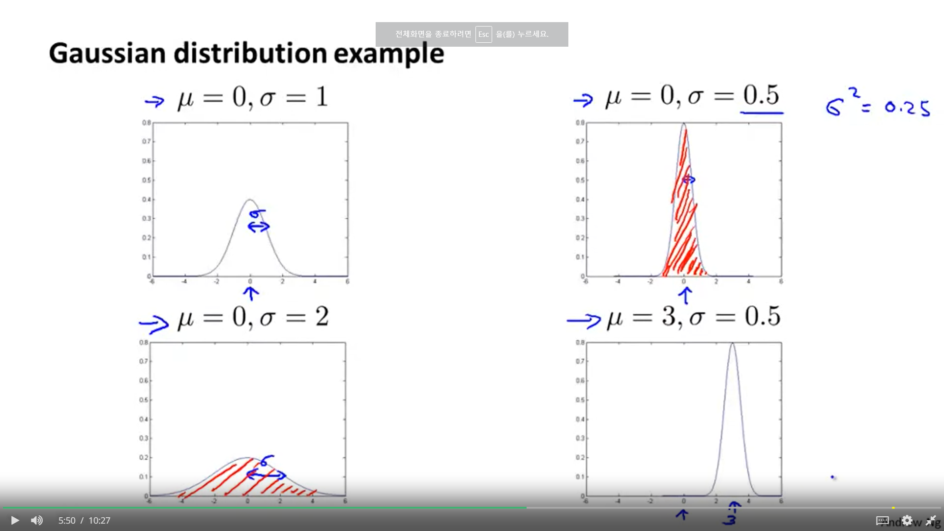 1. 간단하다. 뮤는 중앙의 데이터가 가장 많은 지점, 표준편차 시그마가 커질수록 넓게 펴진다.