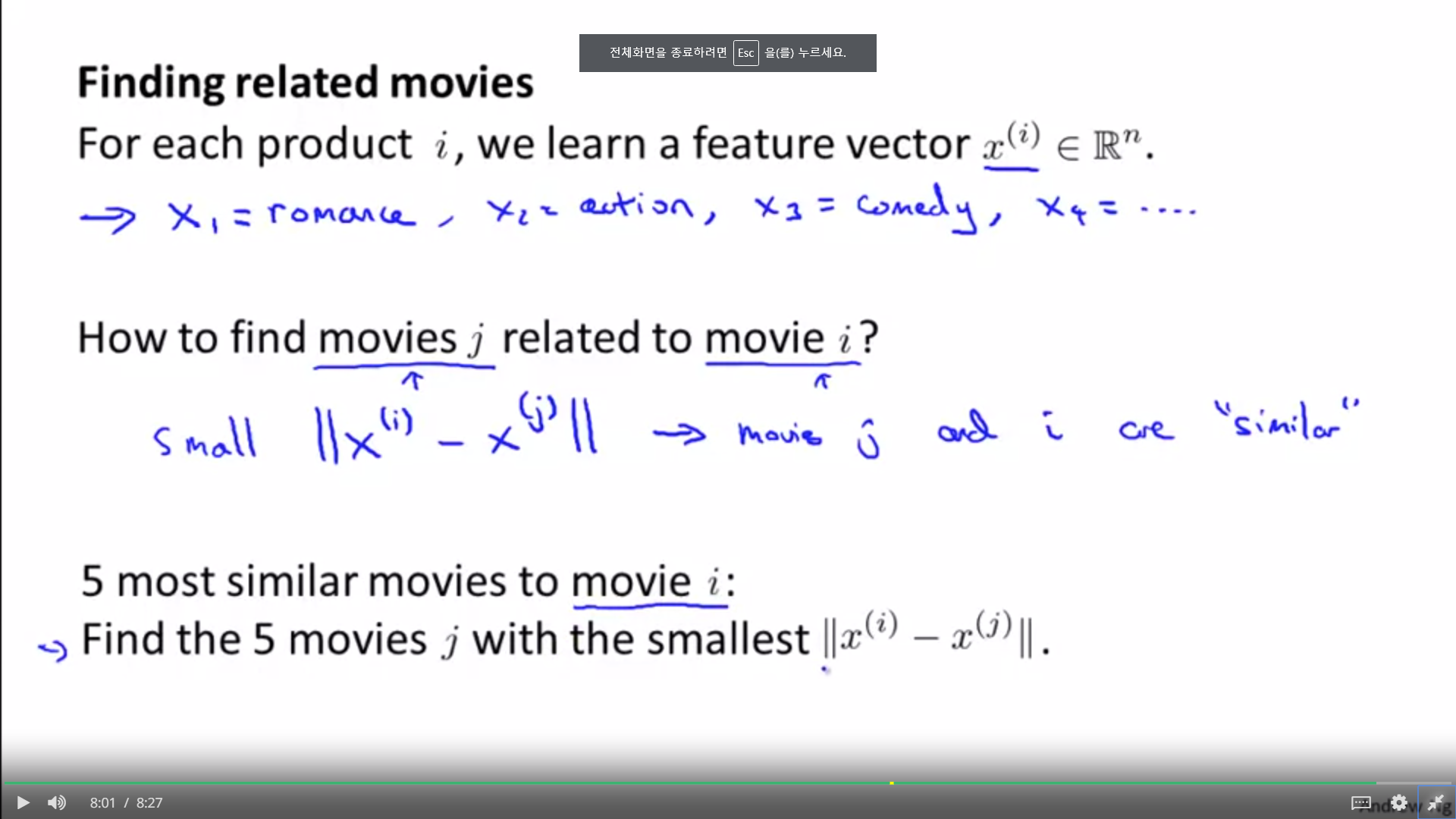 1. 이 행렬을 통해서, 비슷한 유저, 비슷한 컨텐츠에 대해서도 찾을 수 있다. 벡터화 되어 있기 때문에, 위치가 비슷한 곳에 있다면, 그 둘은 비슷한 특징을 지니는 것이다.