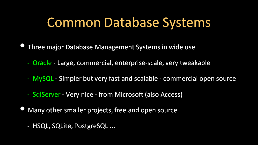 18. ORACLE, MYSQL, SQLSERVER 등 많이 사용되는 데이터베이스 메니지먼트 시스템이 있다.