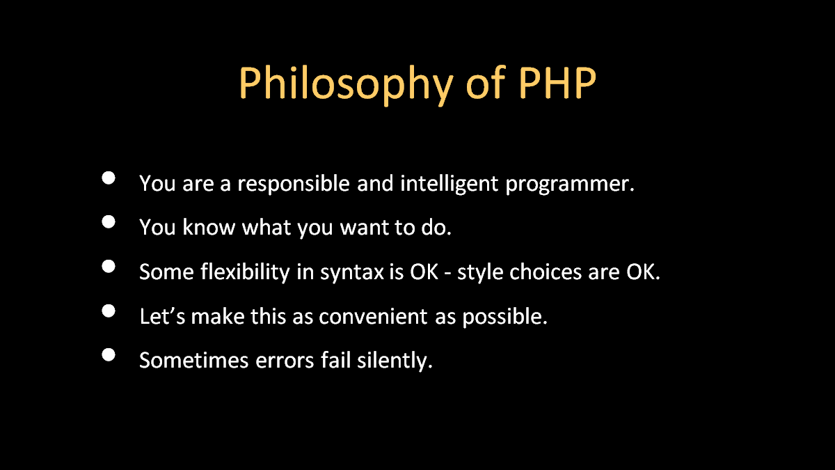 3-1. PHP는 생산성을 추구한다. 그과정에서 PHP는 유능학고 책임감 있는 프로그래머를 원한다.