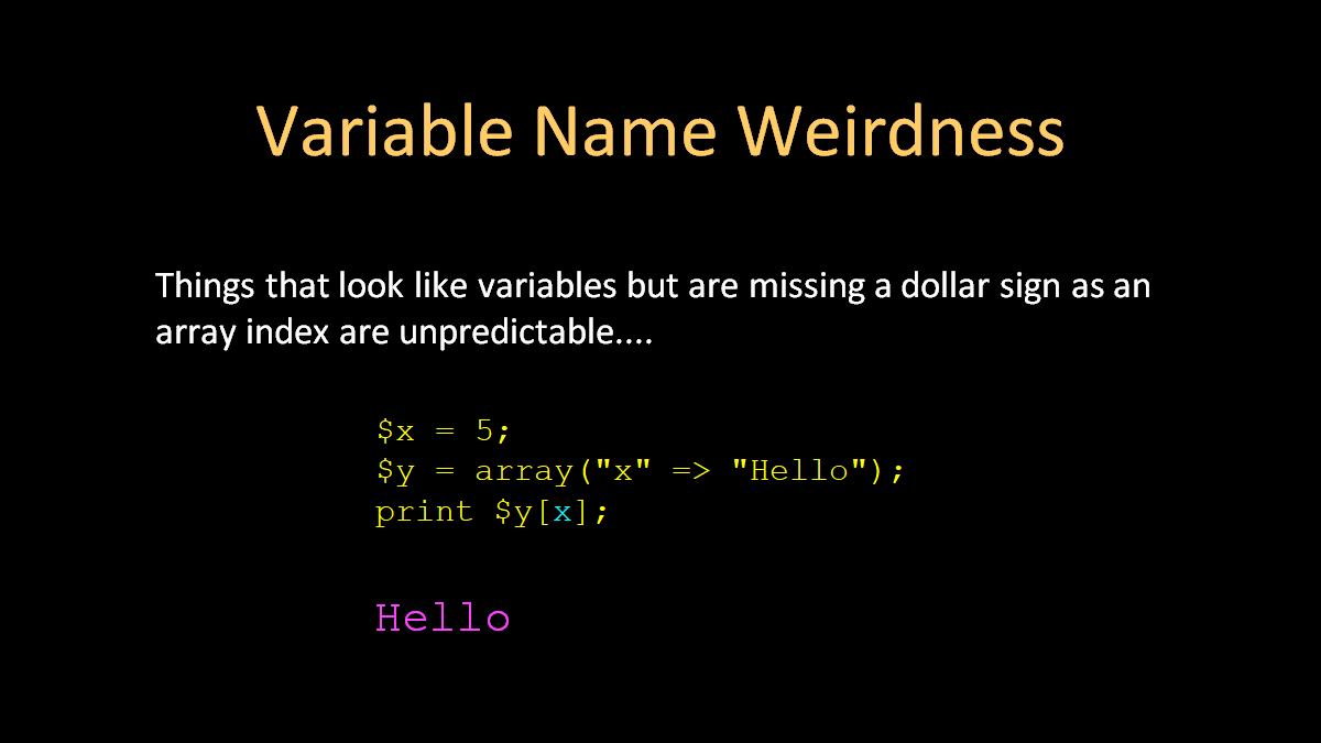 3-2. 두 번째는 x라는 변수에 2를 할당 한 후, $없이 y라는 문자에 $x +5를 할당했기 때문에 오류가 뜬다.