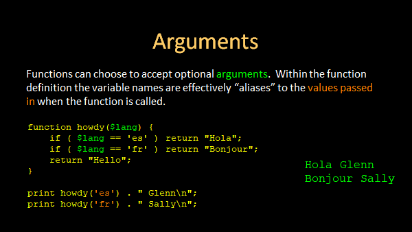 5-1. 함수는 인자를 선택할 수 있으며, 함수 내에서 정의된 변수는 함수가 사용되었을 때 aliases(가명)으로 사용된다.